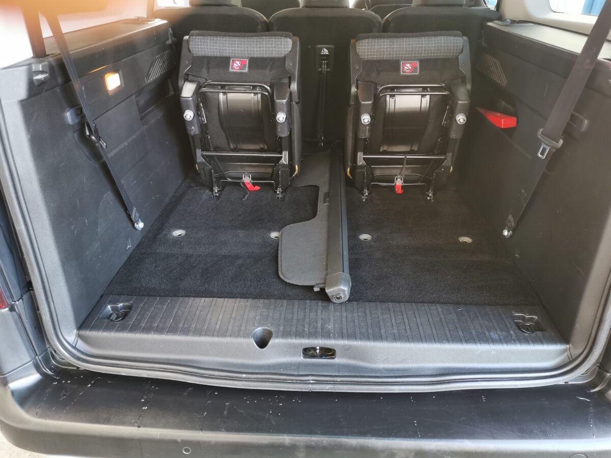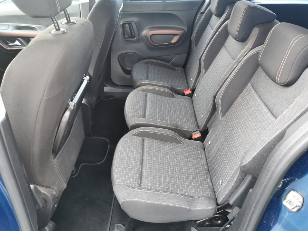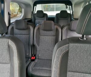 Pack Safety Plus, Pack Visibility, Keyless Système de fermeture et démarrage, Système stop + start, Lève-vitres électrique avant, Lève-vitres électrique arrière, Rétroviseur extérieur électrique chauffant et rabattable, Régulateur et limiteur de vitesse, Porte coulissante gauche, Vitres latérales arrière et lunette arrière teintées, Rails de toit en alu, Jantes en alliage léger 17", Kit de réparation de pneumatiques, Frein de stationnement électrique, Airbags conducteur et passager, Airbags latéraux conducteur et passager, Airbags rideaux avant et arrière, Alerte de changement involontaire de voie, Système de reconnaissance de signalisation, Assistance freinage d'urgence, Fixation Isofix pour siège enfant, Assistance de parc arrière, Caméra de recul, Système de contrôle de pression des pneus RDK, Assistant de démarrage, LED Phares de jour, Sytème anti-blocage des roues ABS, ESP/ ASR, Climatisation automatique 2 zones, Siège passager rabattable, 3 sièges individuels 2ème rangée, 2 sièges individuels 3ème rangée, Siège conducteur réglable en hauteur, Siège conducteur réglable avec appuis lombaire, Rétroviseur intérieur photochromatique automatique, Prise 12V arrière, Tapis, DAB Digital Audio Broadcast, Radio/ USB/ AUX/ Bluetooth, Apple Car Play/ Android Auto, Mirror Link, Aucune garantie sur l'exactitude de l'équipement de série